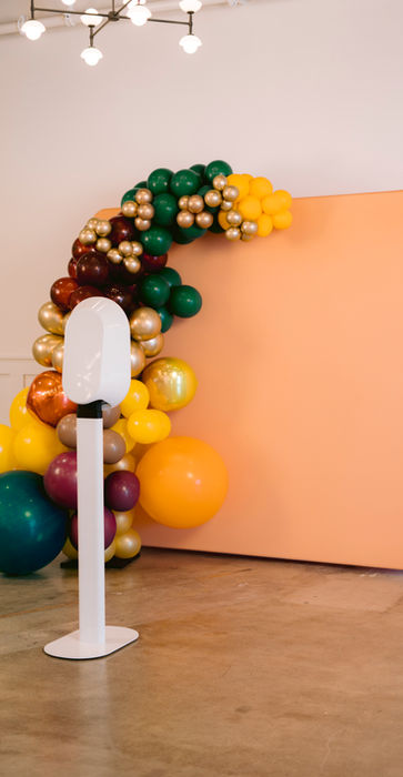Silk photobooth that blends effortlessly with your venue décor, featuring 100+ themes and roaming access for your guests.